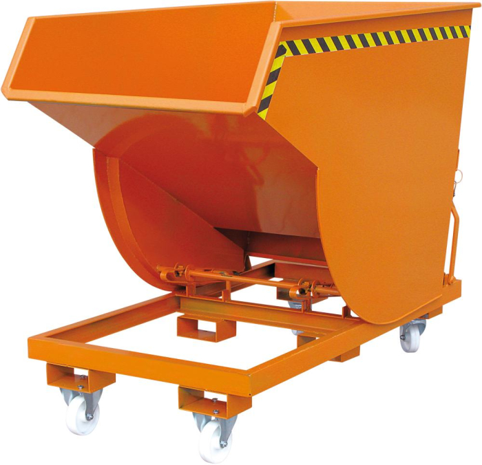 Kippbehälter in hoher Bauhöhe mit steilem Kippwinkel und Radsatz 1000 Liter RAL 2004